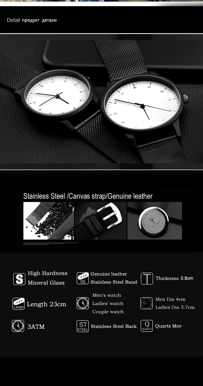 * Пожалуйста, посмотрите подробную информацию, как показано ниже * Чехол для часов: сплав с тонким покрытием (черное покрытие) * Ремешок для часов: кожаный материал * 30 м Водонепроницаемость удовлетворяет потребности повседневной жизни * Мужской размер: длина 24 см диаметр 4 см толщина 0,7 см/женский размер: длина 24 см диаметр 3,8 см толщина 0,7 см * Для молодежных предпочтений Креативный дизайн/передовые мировые дизайнерские версии в уникальном дизайне. Простой и модный