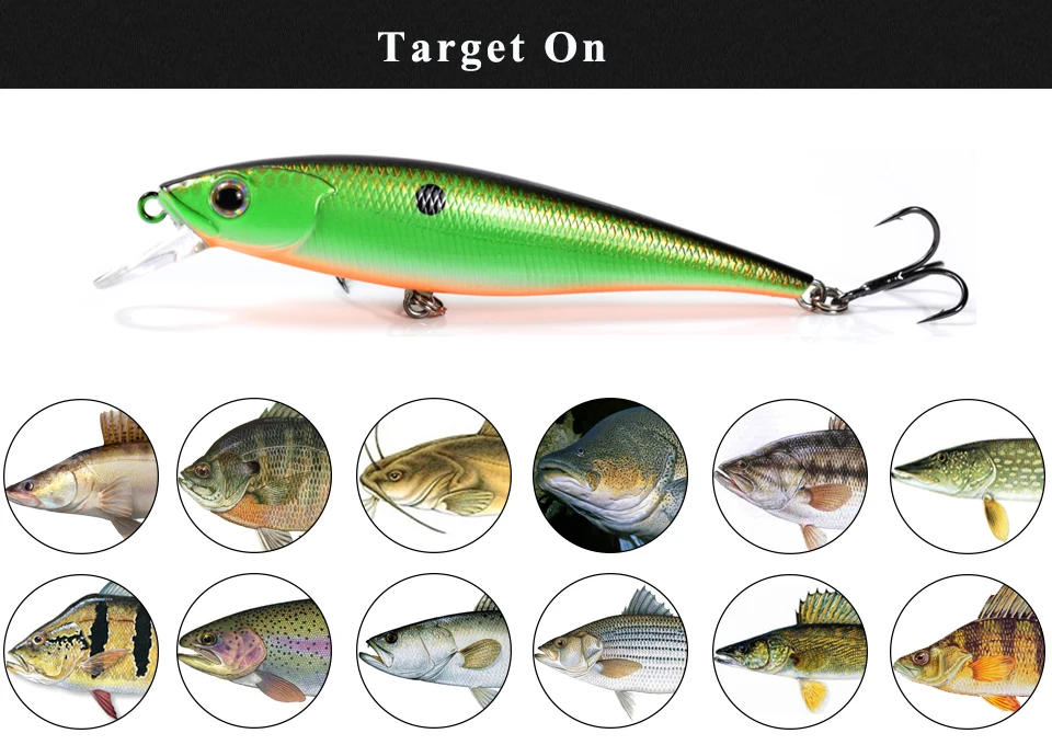 Каждый из наших наживок был изготовлен из экологически безопасного высококачественного АБС-пластика и других прочных аксессуаров, таких как прочные крючки, провода, разделенные кольца. Каждая наживка имеет тяжелое покрытие с превосходной отделкой, окрашенной цветами. В качестве наживки, он копирует наживку рыбы и имеет жизнь, как плавающий экшн. Мимикс естественного цвета и волшебных цветов ручной краски подходят для любого пресноводного или соленого состояния рыбалки.