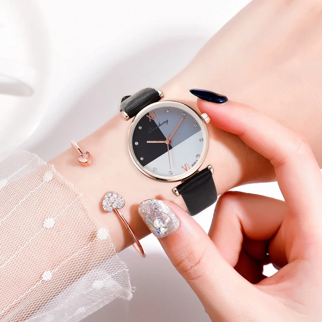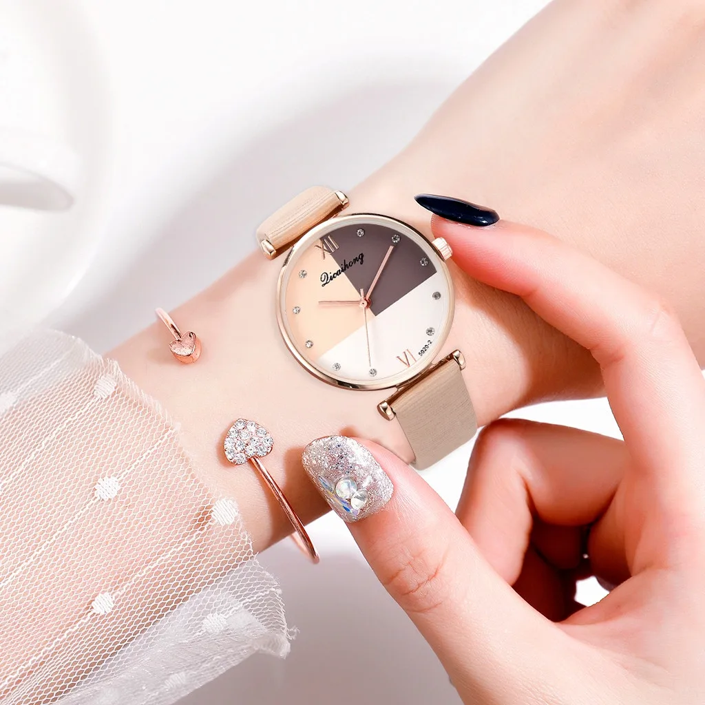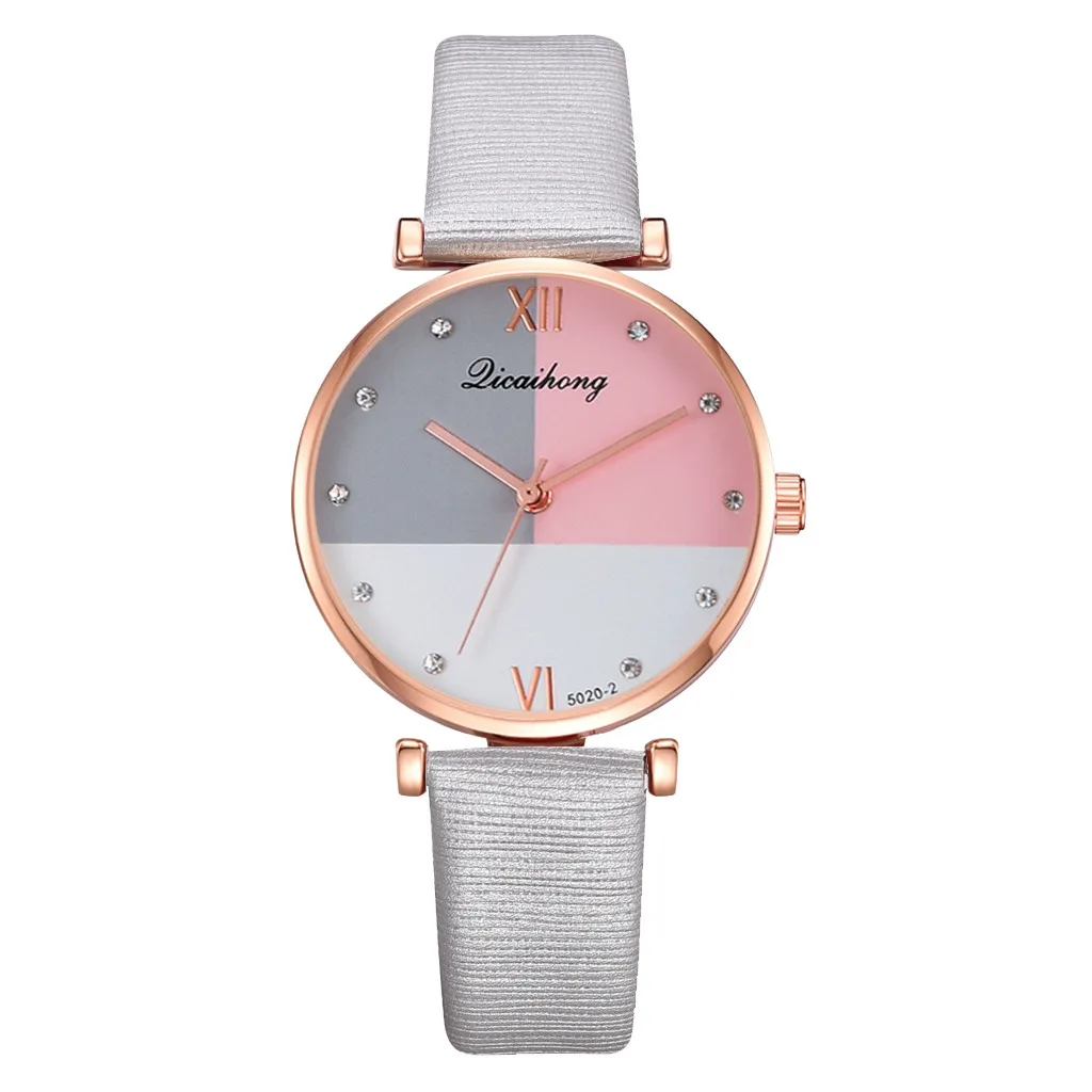 Простые три цвета плоский циферблат ремень кварцевые женские часы женские наручные часы платье часы Подарки наручные вечерние Роза для украшения