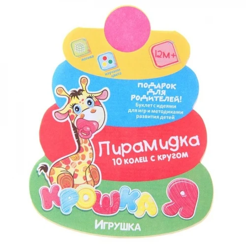 Пирамидка — одна из первых развивающих игрушек малыша, которая состоит из основы-стержня, круглых колец и наконечника в виде шара со смайликом.