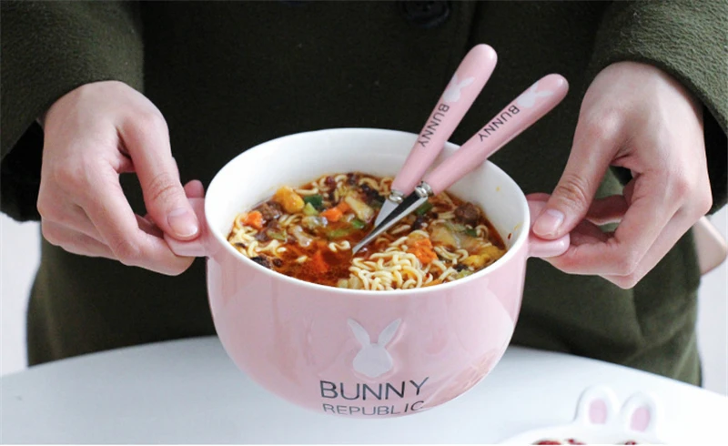 750 мл керамический кролик Ramen чаша мультфильм фруктовый соус десертная тарелка дети еда обеденная миска-контейнер посуда с ложкой и вилкой