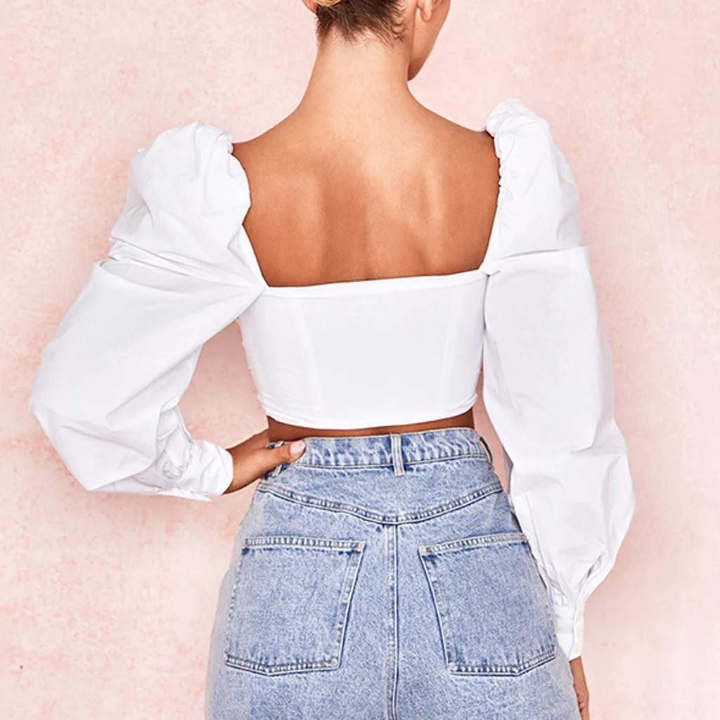 1. Особенности: модные женские топы, однотонные, длинные рукава-фонарики, открытые, на шнуровке, топы.
