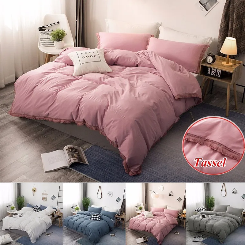 Элегантный однотонный Комплект постельного белья, Комплект постельного белья, пододеяльник, наволочка с красивой кисточкой, одиночный, полный, Королевский размер
