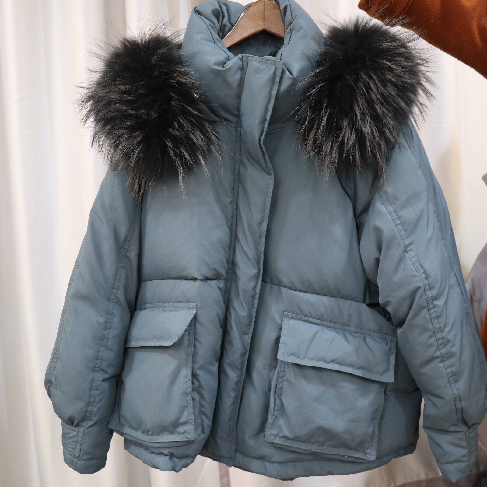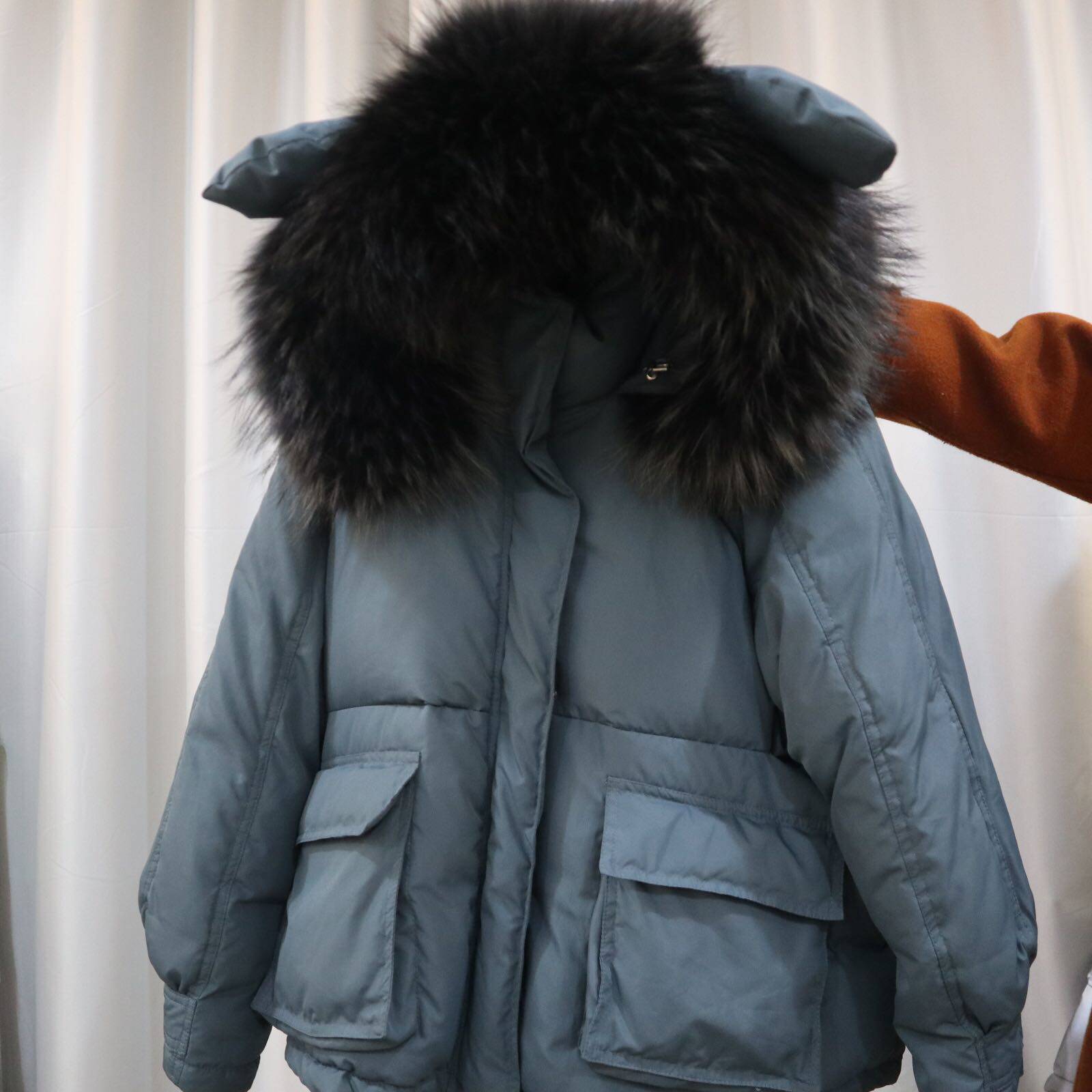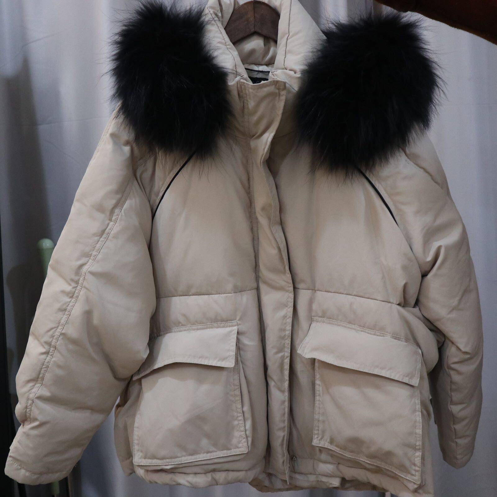 Материал:Натуральный мех енота меховой воротник+Белый пуховик на утином пуху Iinner