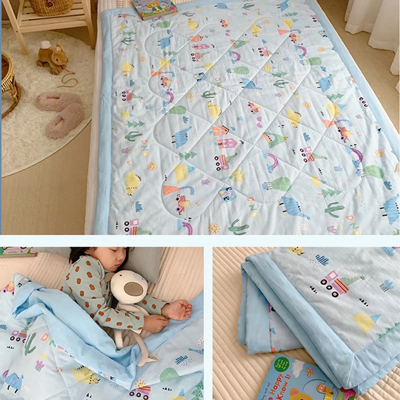 Милое детское хлопковое Двухслойное газовое стеганое одеяло с рисунком для детского сада, летнее одеяло для постельных принадлежностей, домашний текстиль