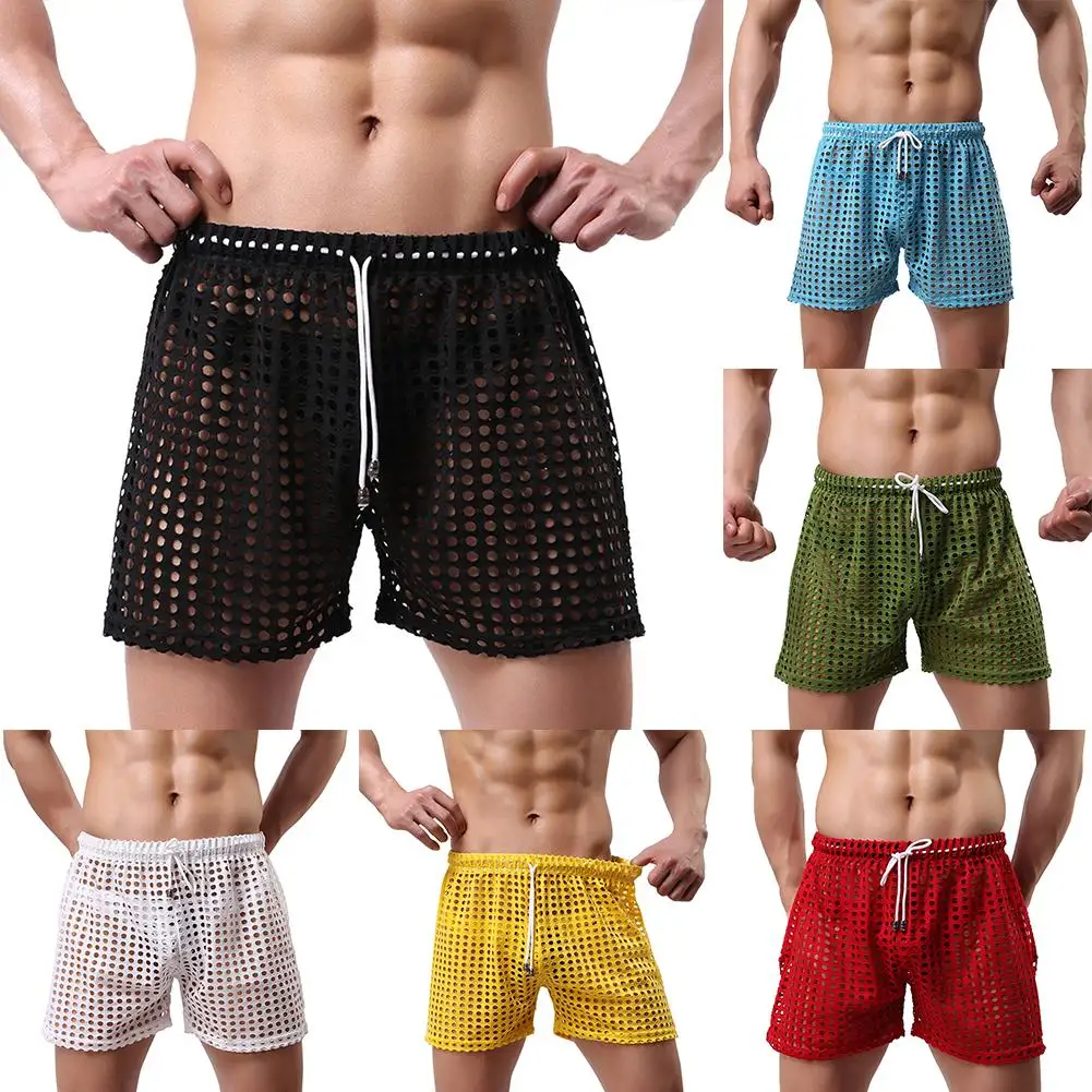 Мужское сексуальное дышащее Сетчатое нижнее белье с завязками для отдыха Боксеры Шорты