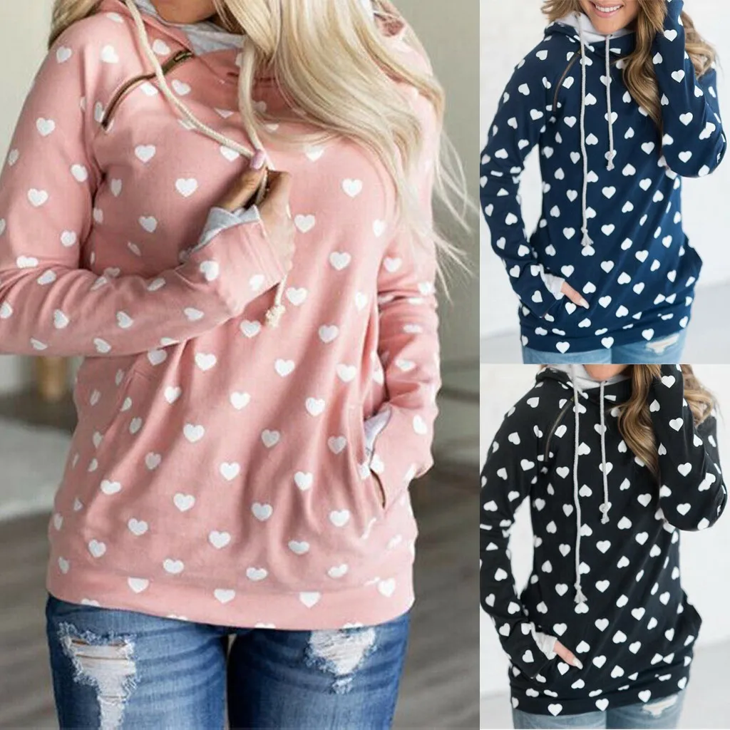 Fashion Women Casual Loose Long Sleeve Zipper Strappy Sweatshirt Tops