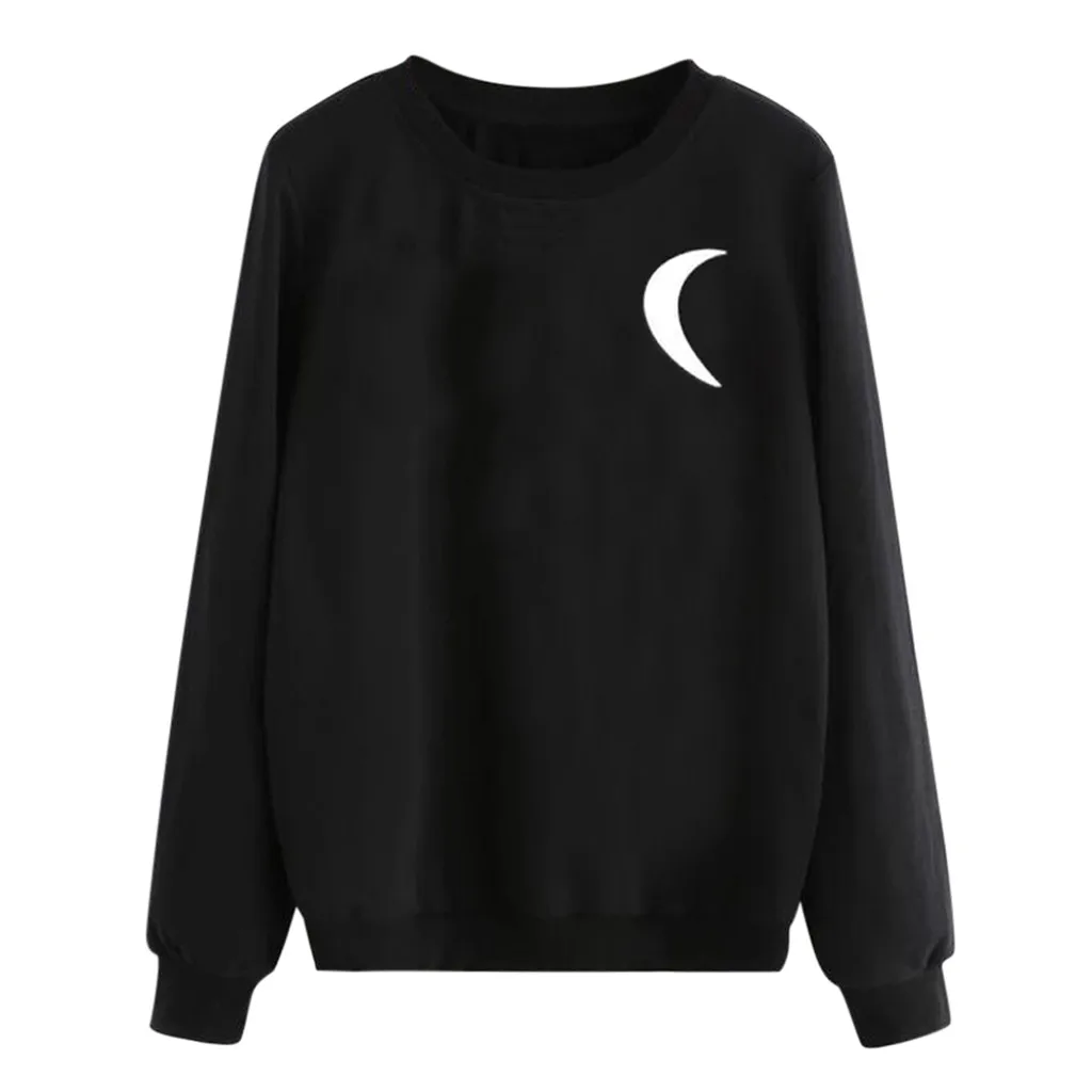 Женская Повседневная Толстовка в стиле панк с длинным рукавом и круглым вырезом с принтом Луны, пуловер, топы