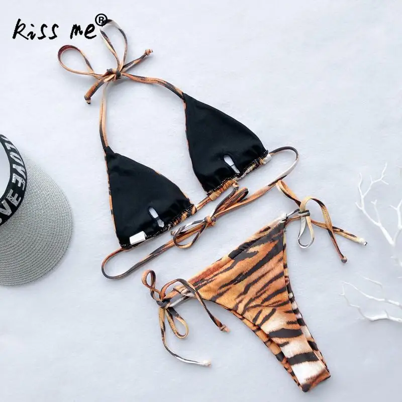 Сексуальный купальник с лямкой на завязках, Леопардовый купальник, пляжный купальный костюм с низкой талией, с высокой талией, Пляжное нижнее белье с набивкой, треугольный бюстгальтер для женщин
