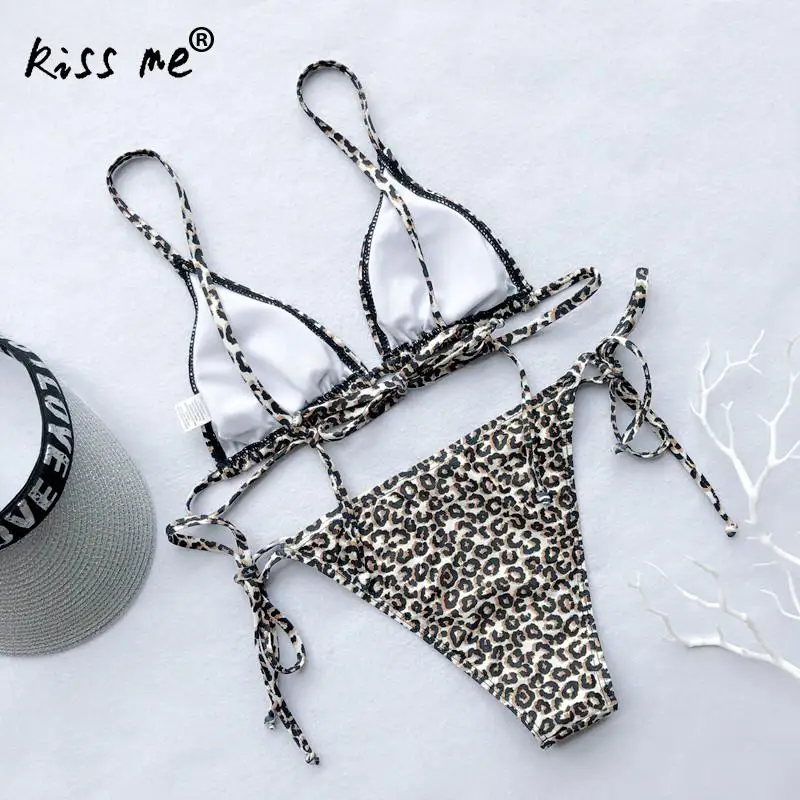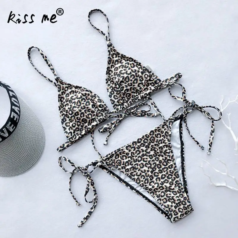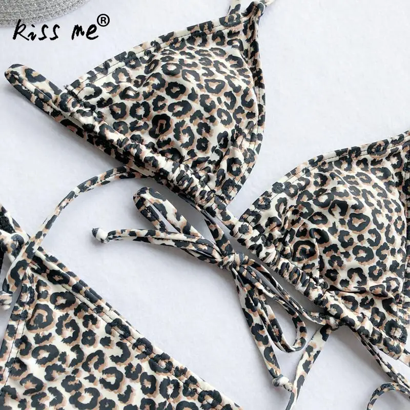 Летний сексуальный комплект бикини Леопардовый Танкини с завязками на шее купальник треугольник бюстгальтер мягкие пляжные стринги высокий разрез без спинки купальный костюм