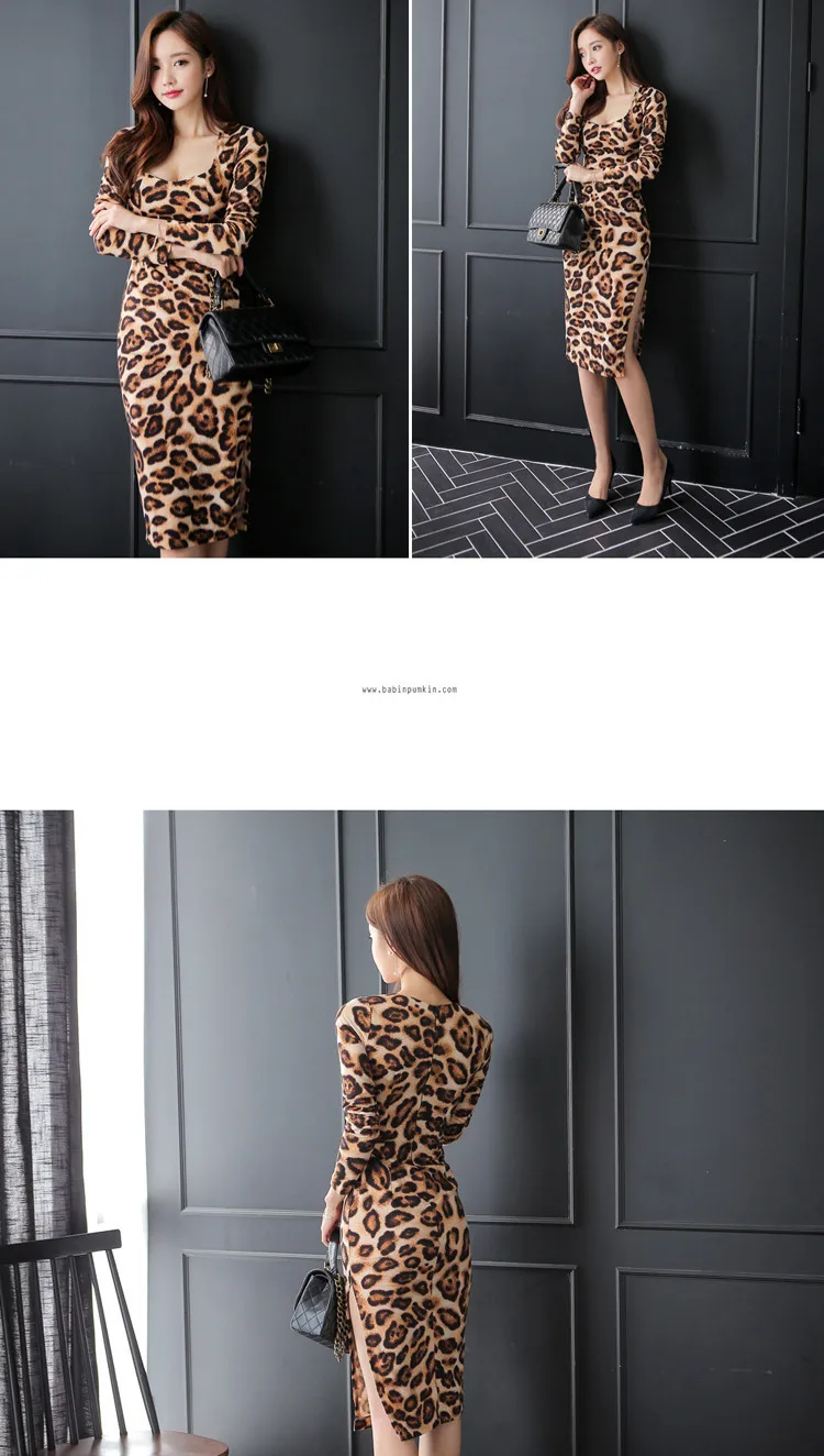 Леопардовое платье с длинными рукавами на талии и карманом на бедрах тонкое платье для ночного клуба элегантное темпераментное женское летнее платье 2019
