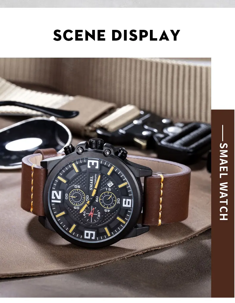 SMAEL, мужские часы, повседневные, сплав, водонепроницаемые, 30 м, кварцевые наручные часы, для улицы, спортивные, военные часы, мужские часы, erkek kol saati 9073