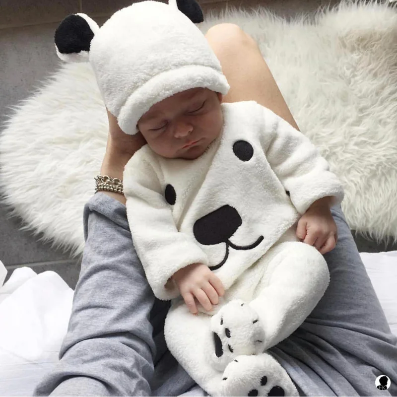 Пушистый Теплый комплект одежды для новорожденных девочек и мальчиков, повседневный пуловер с длинными рукавами, штаны, шапка, комплект из 3 предметов, теплая одежда, комплект с медведем для малышей!