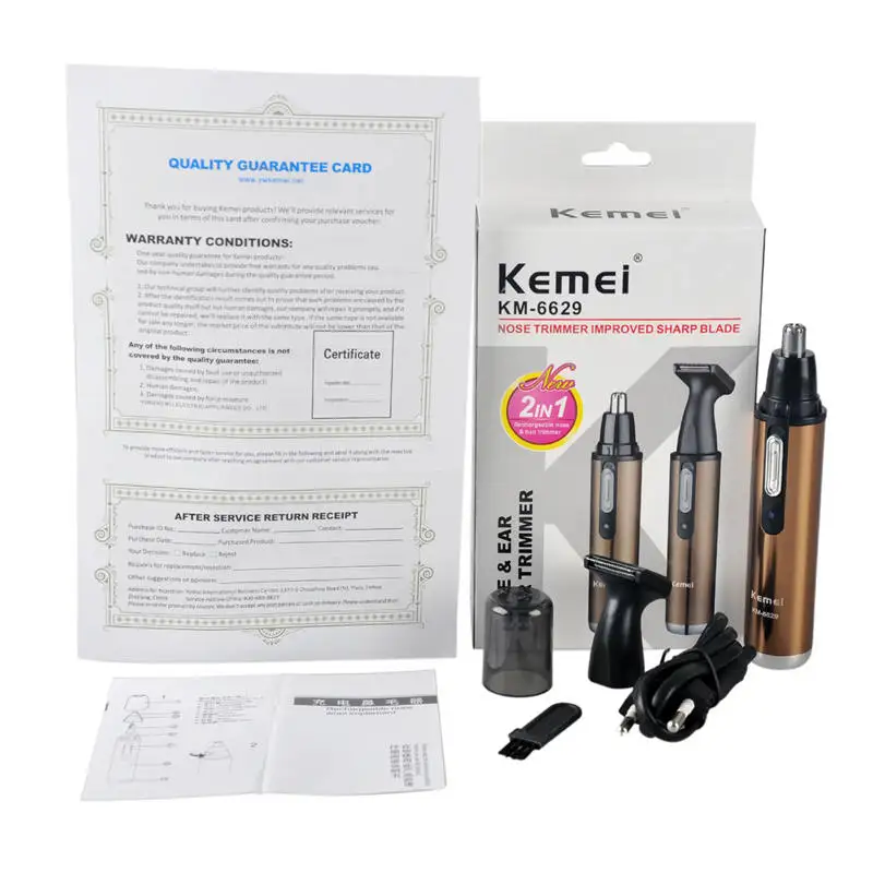Kemei KM-6629, электрический триммер для бритья 2 в 1, триммер для волос в носу для мужчин, безопасный уход за лицом, триммер для бритья для мужчин, бритва для волос в носу