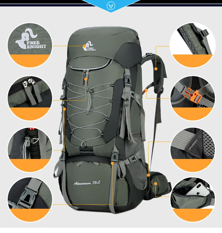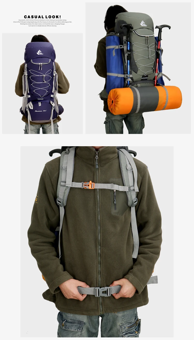 Camping Hiking Backpacks 75L Outdoor Nylon Waterproof Superlight Sport Travel Bag With Rain Cover Trekking Climbing Backpack Men
