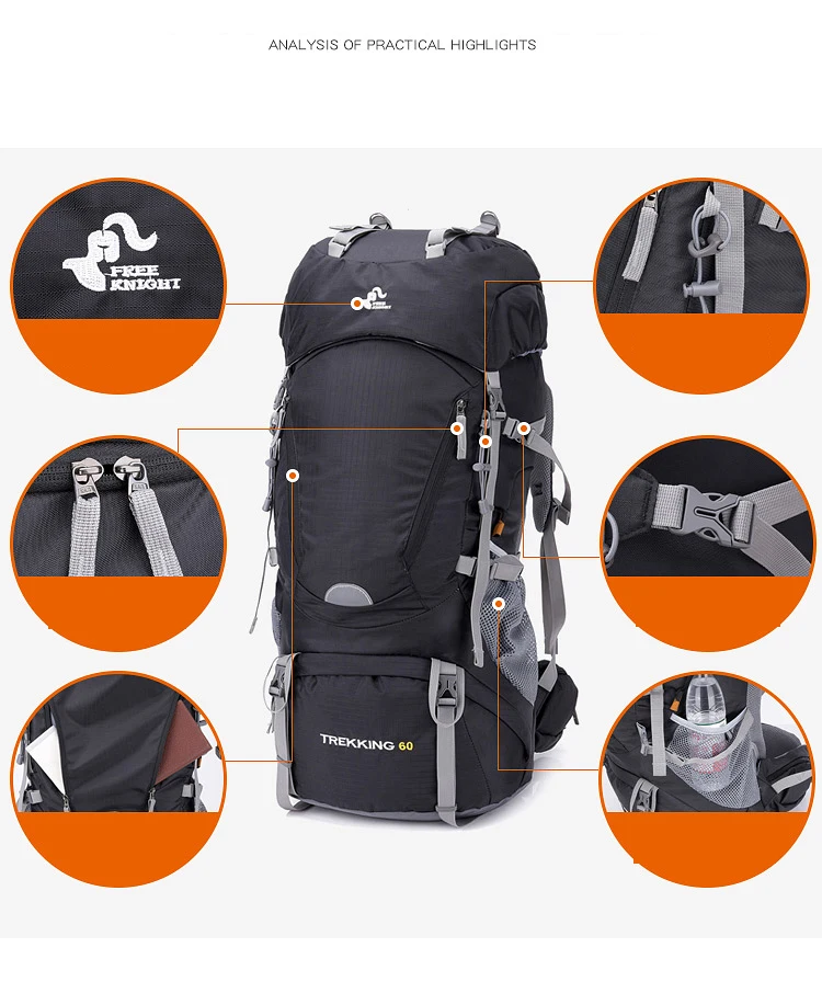 Походные походные рюкзаки 60л, рюкзак для альпинизма, нейлоновый Суперлегкий спортивный дорожный рюкзак с дождевиком, поддержка из алюминиевого сплава