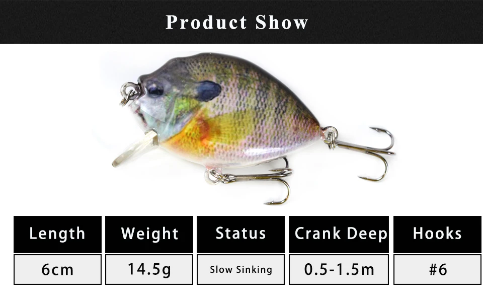 Длина: 6 см Вес: 14,5 г Статус: медленно опускается на дно Crank глубокий: 0,5-1,5 м