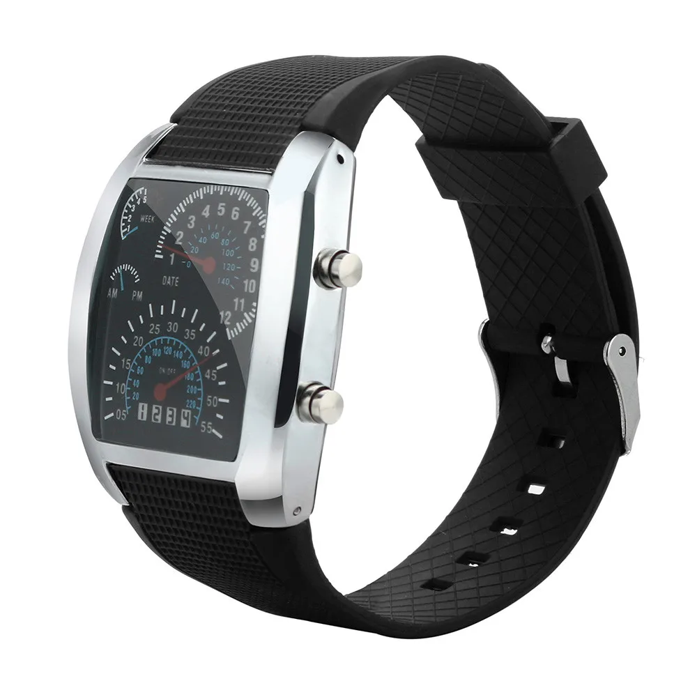 Мужской модный светодиодный светильник с турбо спидометром спортивные часы