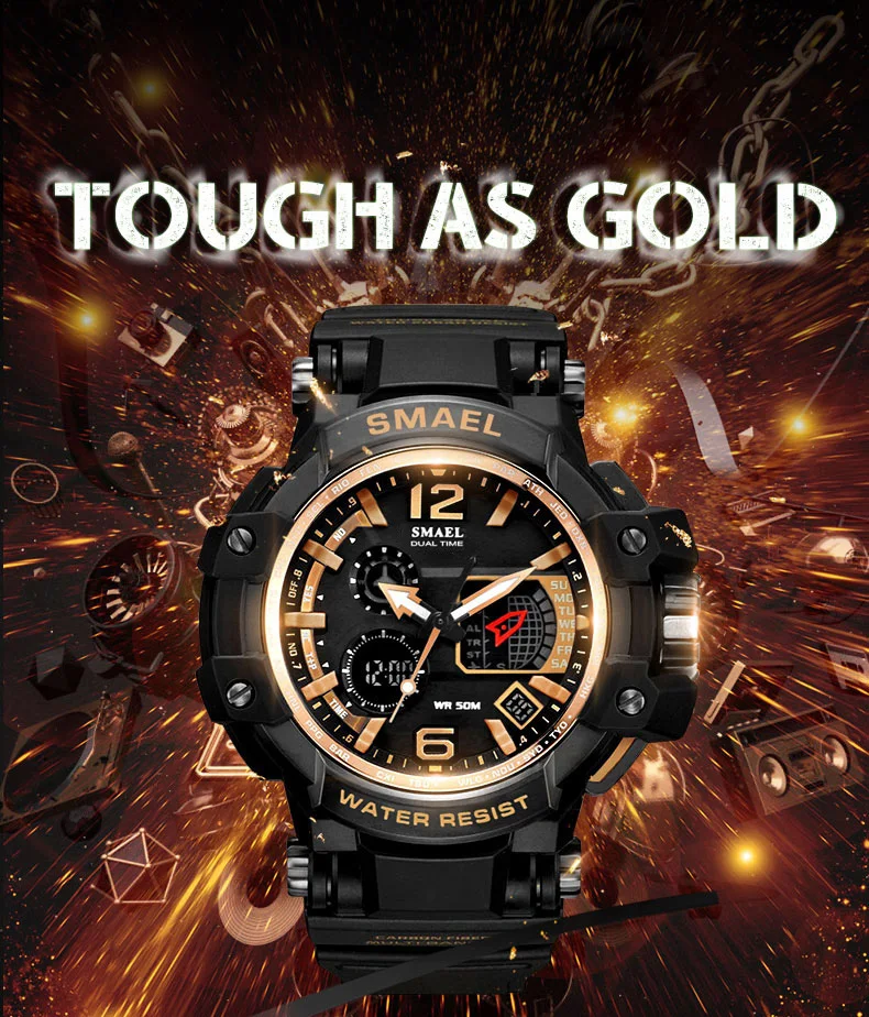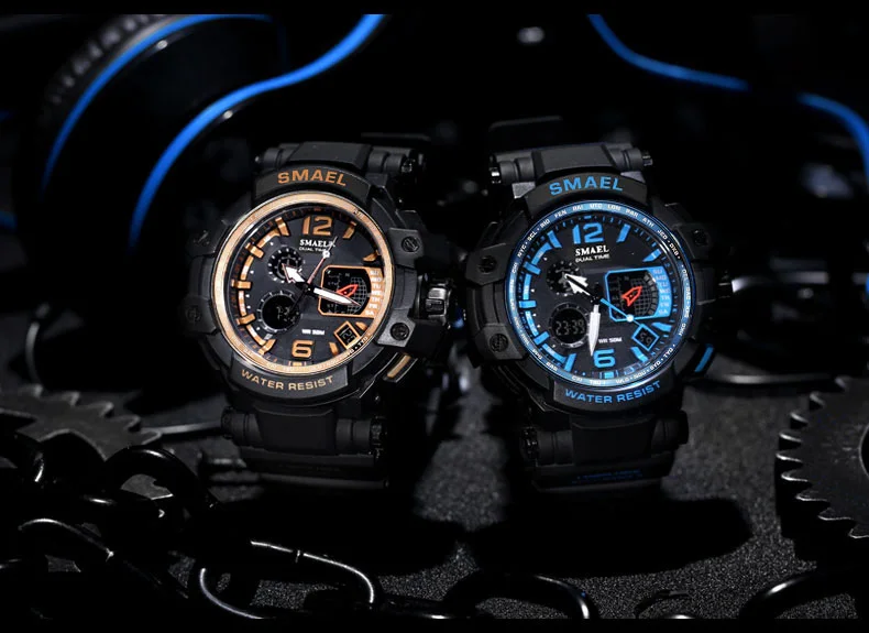 SMAEL спортивные мужские часы 2020 с двойным дисплеем, хронограф, будильник, аналоговые кварцевые наручные часы, мужские водонепроницаемые военные часы 1509