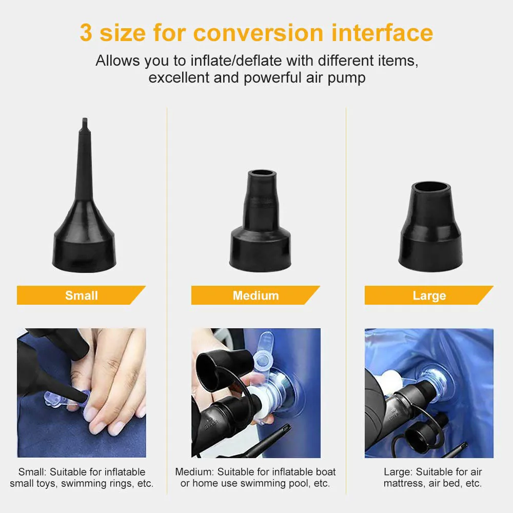 Воздушный насос-1 шт. насадки-3 шт. автомобильный адаптер 12 В-1 шт. адаптер 100-240 В-1 шт. руководство-1 шт.
