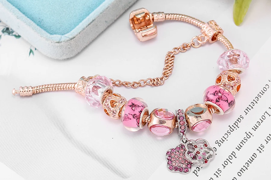 Бренд: DINGLLY Название: модные браслеты с подвесками в виде цветов розового персика для женщин и мужчин, розовые кристаллы, бусины-бабочки, оригинальный розовый золотистый браслет, подарки Стиль: бусинки для Модной Бижутерии/браслет с подвесками Материал: сплав + стекло Экологичность: без использования свинца и никеля аллергия никогда не повредит руку Размеры: 16 см высоком каблуке 17 см; высота каблука 18 см 19 см 20 см 21 см Носить Повод: Свадьба/помолвка/Юбилей/предложение/вечерние/подарок Фестивали: День Святого Валентина/День матери/Новый год/Рождество/День рождения/день детей