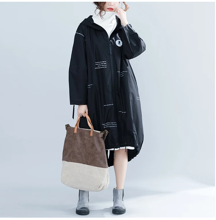Женское свободное платье с капюшоном S-5XL, повседневное свободное платье большого размера с длинным рукавом и разрезом, зима 2019