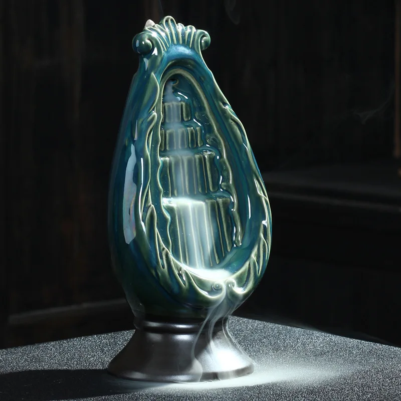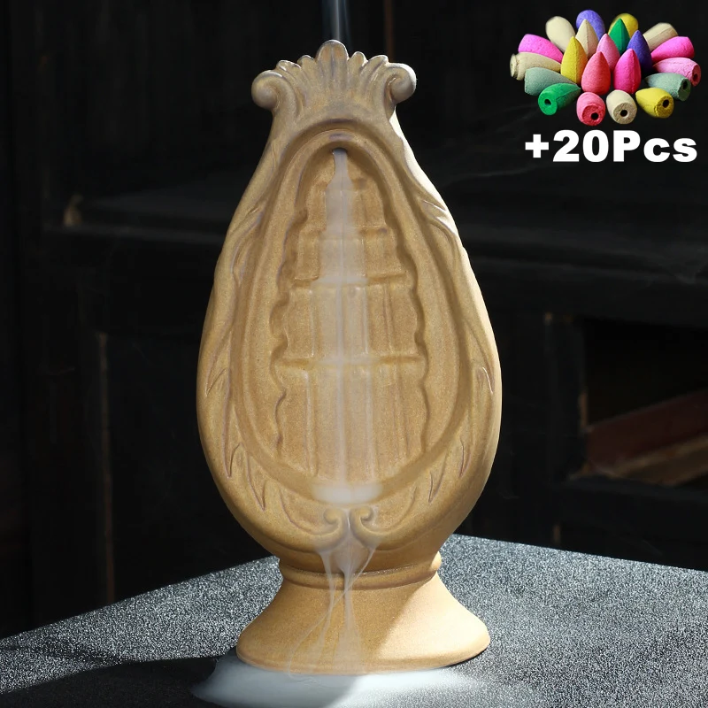 Item : Backflow Incense Burner Material : Ceramic Size : Approx 10x23cm Color : As picture shown Applications : Home, office, hotel, tea house, yoga studio, meditation, buddhist temple, living room, etc. Efficacy : Fresh air, calm the nerves, help focus, decoration, etc. Package : 1 x Incense burner 20 x Incense cones
