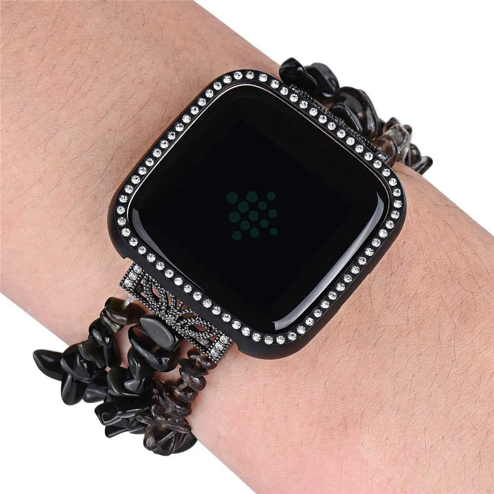 Женский ремешок для часов с блестящими камнями, браслет с камнями, ремешок для Fitbit Versa, ремешок для смарт-часов, сменный браслет на запястье с чехлом