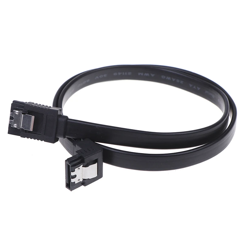 Brand new SATA data cable used for connecting serial ATA hard drive to serial ATA compatible mother board. Straight to right angled connectors with locking clip for secure connection. Compatible with SATA I and SATA II hard drives and mother boards. will also connect SATA II Hard Drtive to SATA I Motherboard and Vice versa (speed dictated by slowest).