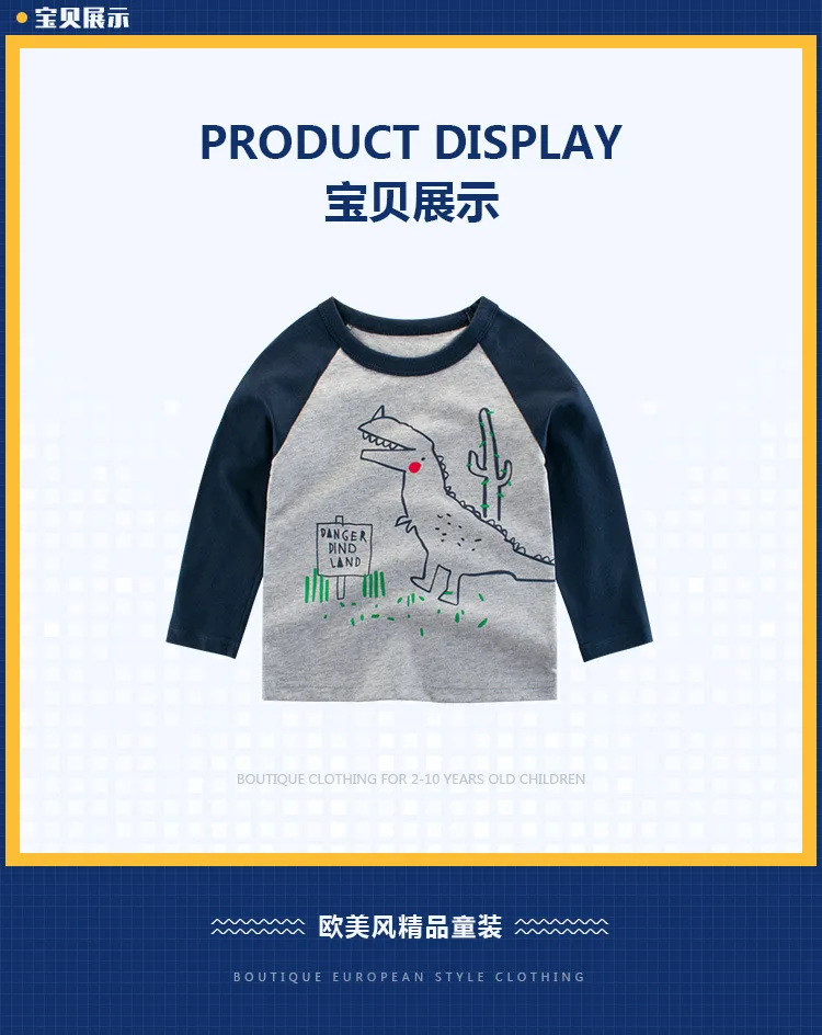 Весенне-осенние детские футболки с длинными рукавами для мальчиков, футболка с принтом динозавра, хлопковые футболки, детские нательные майки, одежда для детей