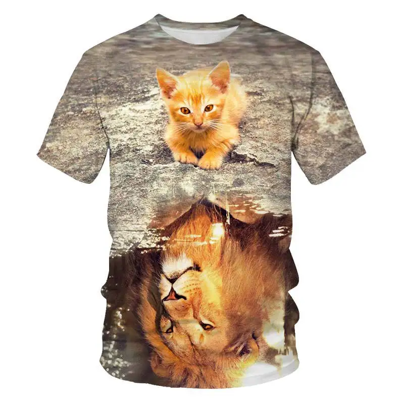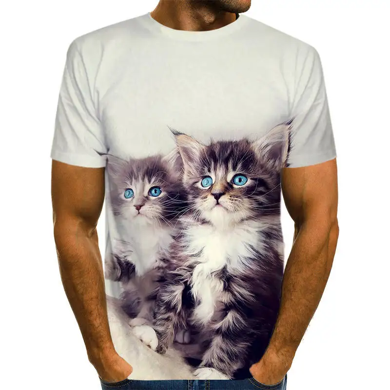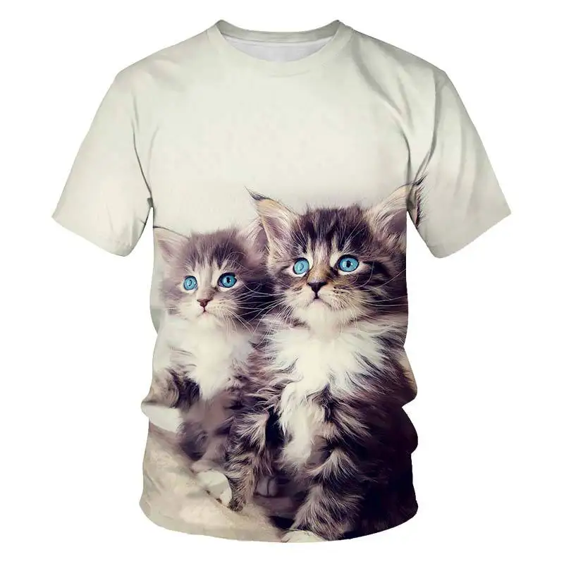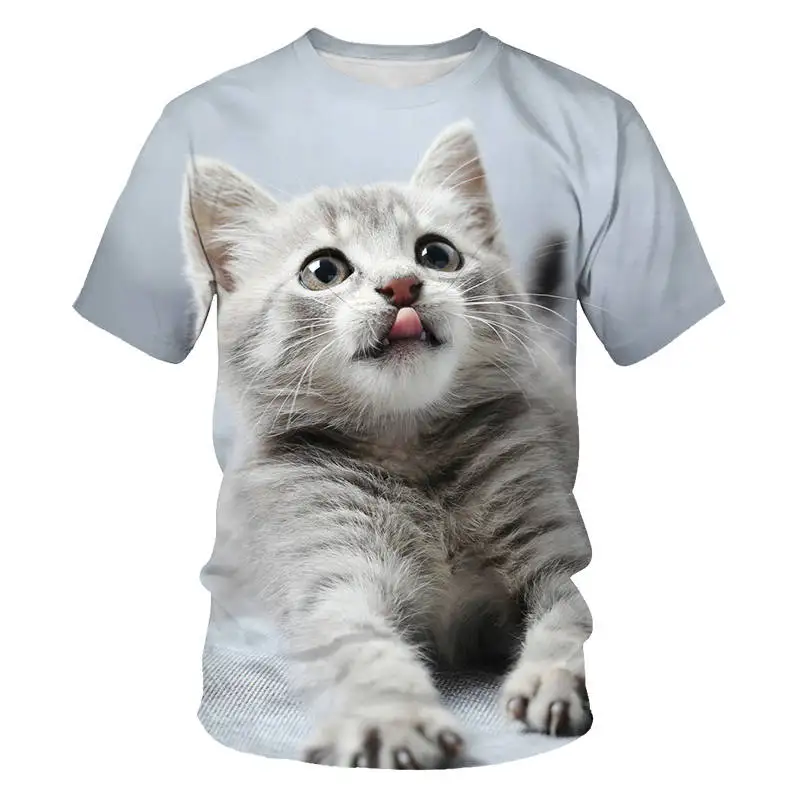 Милая футболка с объемным изображением счастливого кота для девушек и женщин