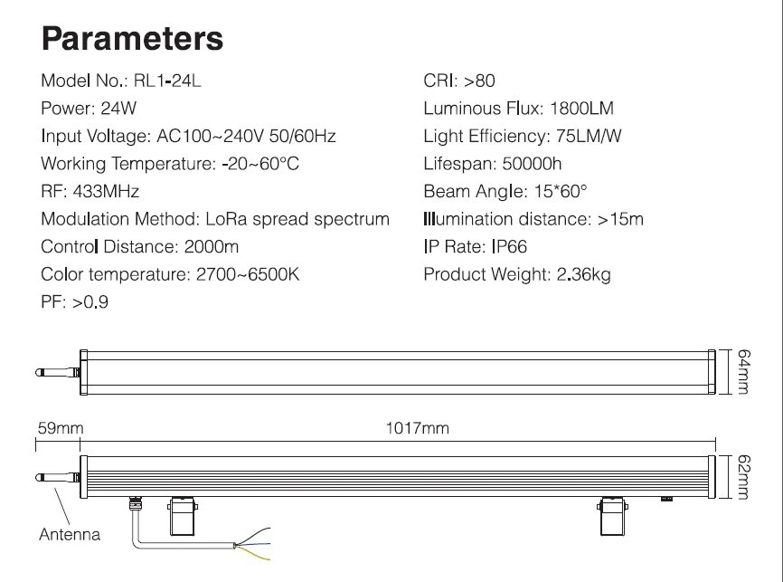 Название продукта: 24 Вт RGB + CCT светодиодный настенный светильник (LoRa 433 МГц)