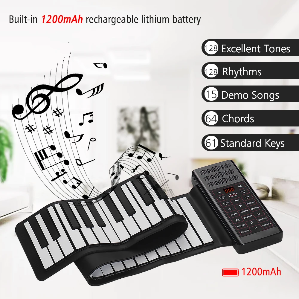 Гибкий дизайн и портативный размер, позволяет легко играть на пианино в любое время и в любом месте.