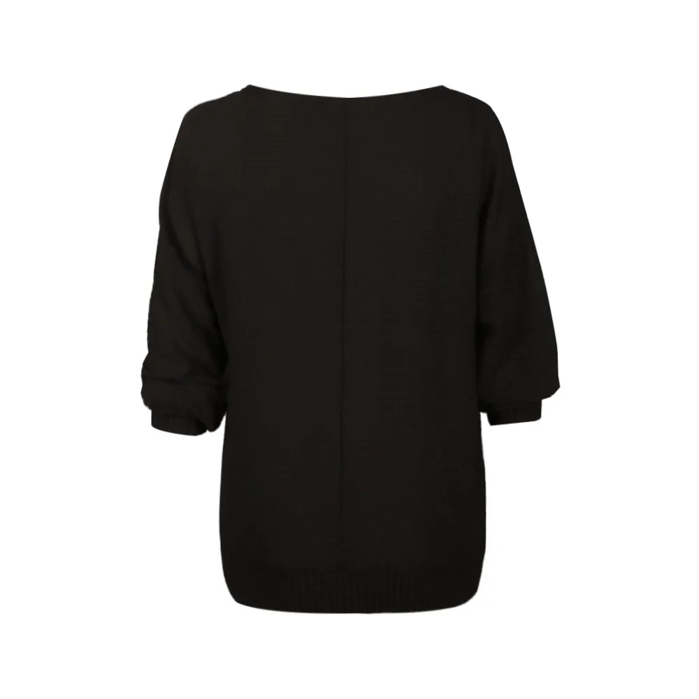 Для женщин платье с расклешенным рукавом Пуловер Свободный свитер джемпер Топы Трикотаж