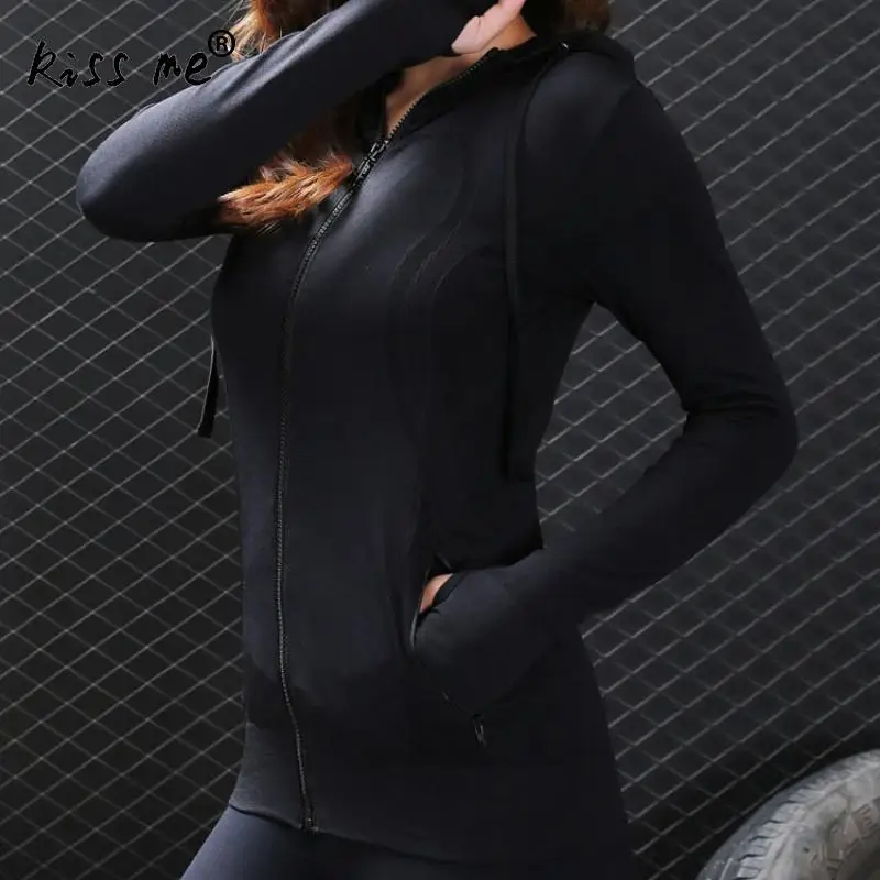 Женский спортивный костюм на молнии с длинным рукавом и капюшоном для занятий спортом на открытом воздухе