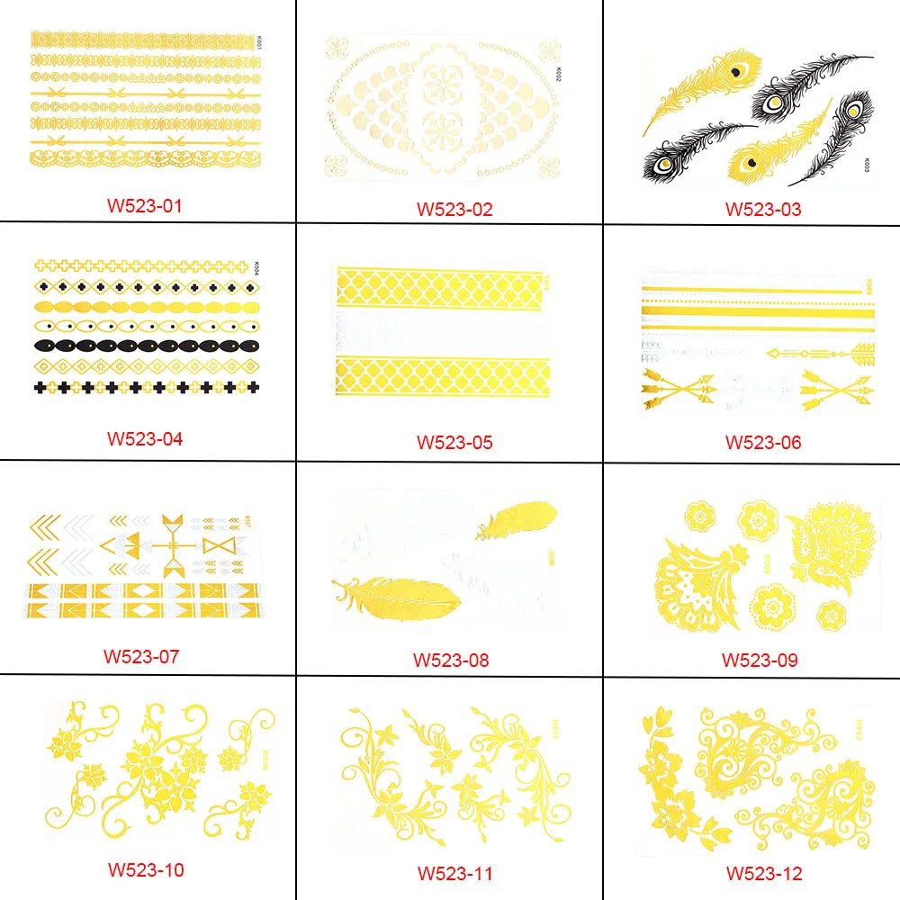 12 стилей Временная металлическая татуировка наклейки.