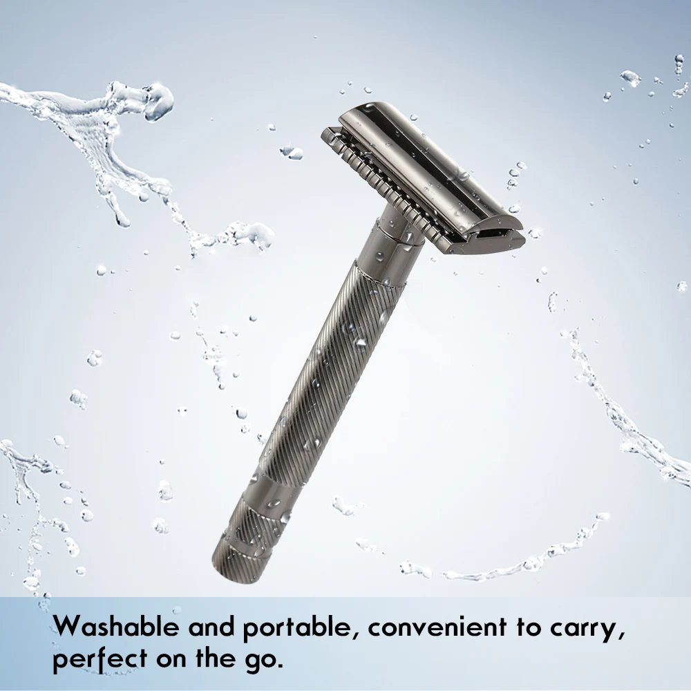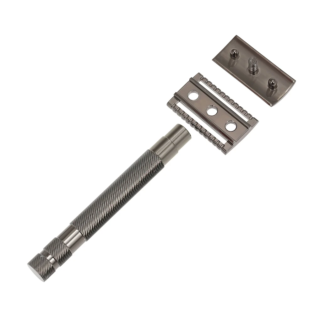 Бритва изготовлена из высококлассных сплавов с яркой черной отделкой жемчугом, выглядит элегантно. Текстурированная конструкция ручки делает бритву легкой в захвате и нескользящей. Должен быть товар для мужчин.