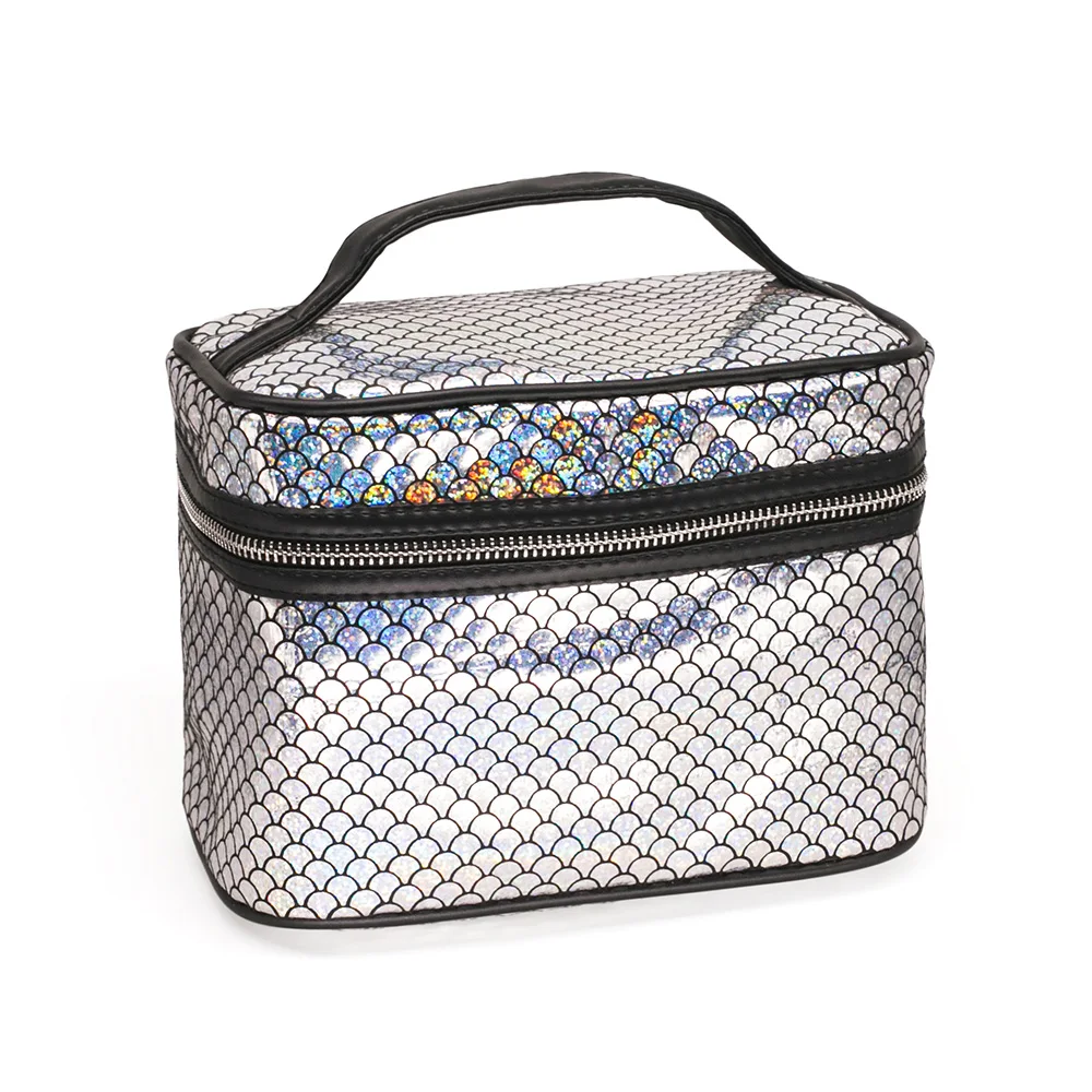 Многофункциональная сумка для хранения косметики, которая разработана с рисунком рыбных весов, изысканным внешним видом и тонкой работы. Эта косметичка с большой емкостью, безусловно, должна быть для вас, чтобы использовать дома или носить с собой во время поездки. Он хорошо предназначен для хранения макияжа, туалетных принадлежностей или других мелких предметов, очень практичный и удобный.