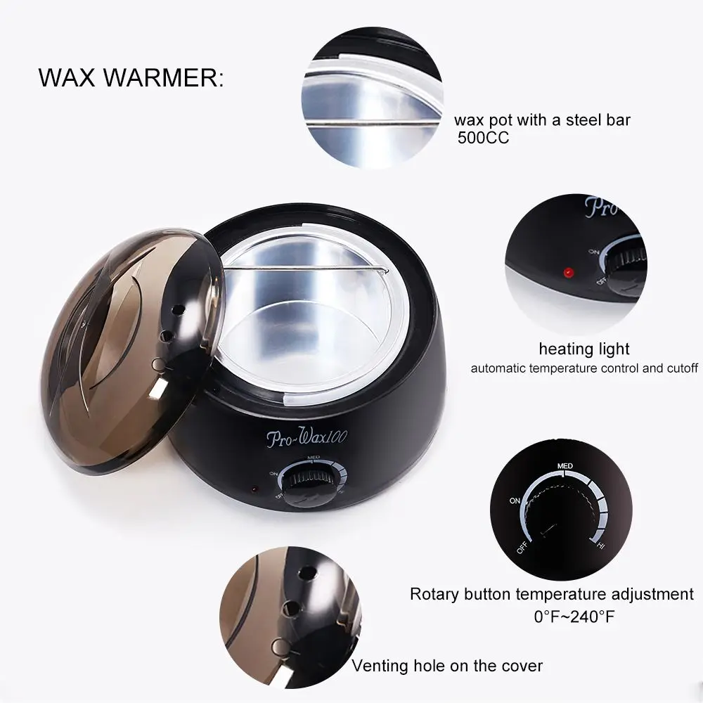 Легко и удобно, просто расплавьте восковые бобы в восковой грелке перед нанесением на кожу, затем Удалите нежелательные волосы с помощью аппликатора.
