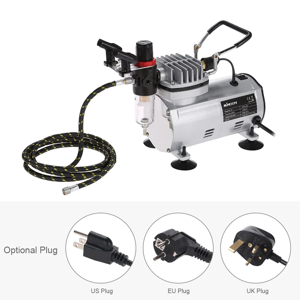 Here comes a new brand KKmoon airbrush kit with 3 airbrushes kit and high efficiency air compressor! It is perfect for your spray painting art, also for nails & temporary tattoos, cake decorating, craft painting, hobbies, commercial arts, illustrations, photo retouching and other airbrushing. This high performance compressor is designed for users who need high quality spraying effect. Use this air pump kit for airbrush compressor, you can get from a beginner to become an advanced artist. So don't hesitate, just take it home!