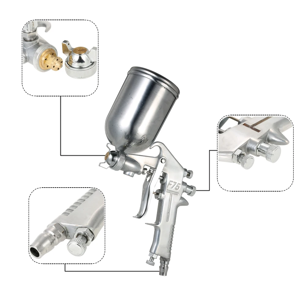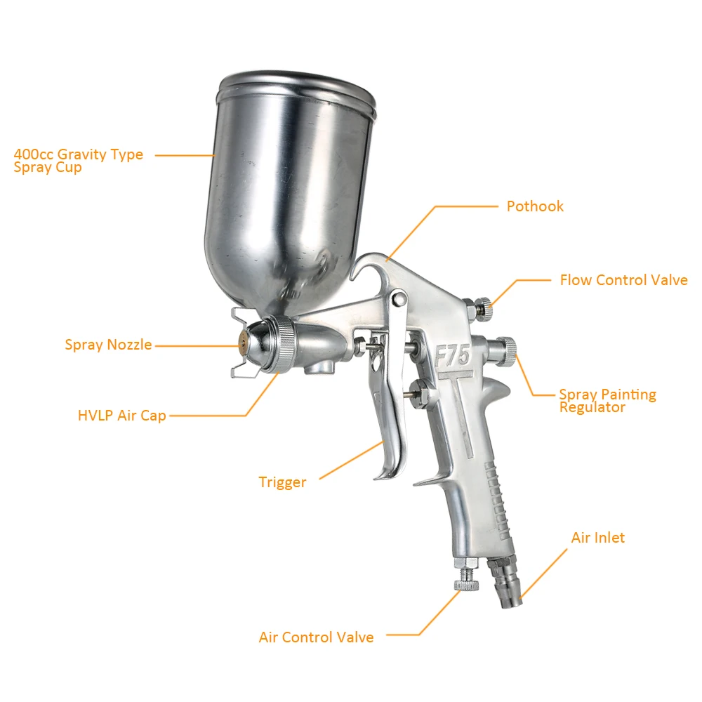 Этот профессиональный пистолет-распылитель отлично подходит для детальной живописи с гравитационным Тип подачи. С 1,5 мм из нержавеющей стали жидкая игла и сопло, этот универсальный распылитель может обрабатывать краску на водной основе и разбавлять краску на основе растворителей. Встроенный регулятор гарантирует, что вы получаете идеальный поток краски каждый раз. Эта оптимизированная скорость потока означает, что ваши операционные расходы будут уменьшены-не больше потраченной краски.