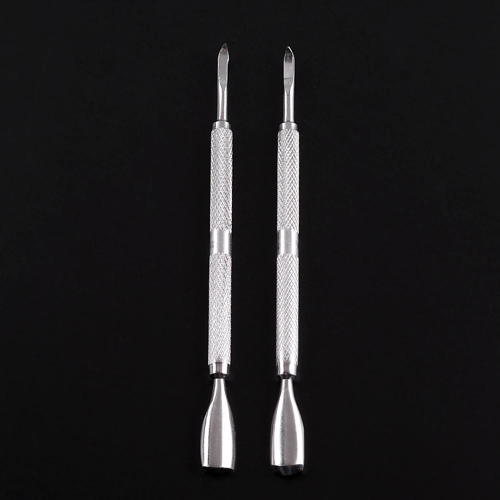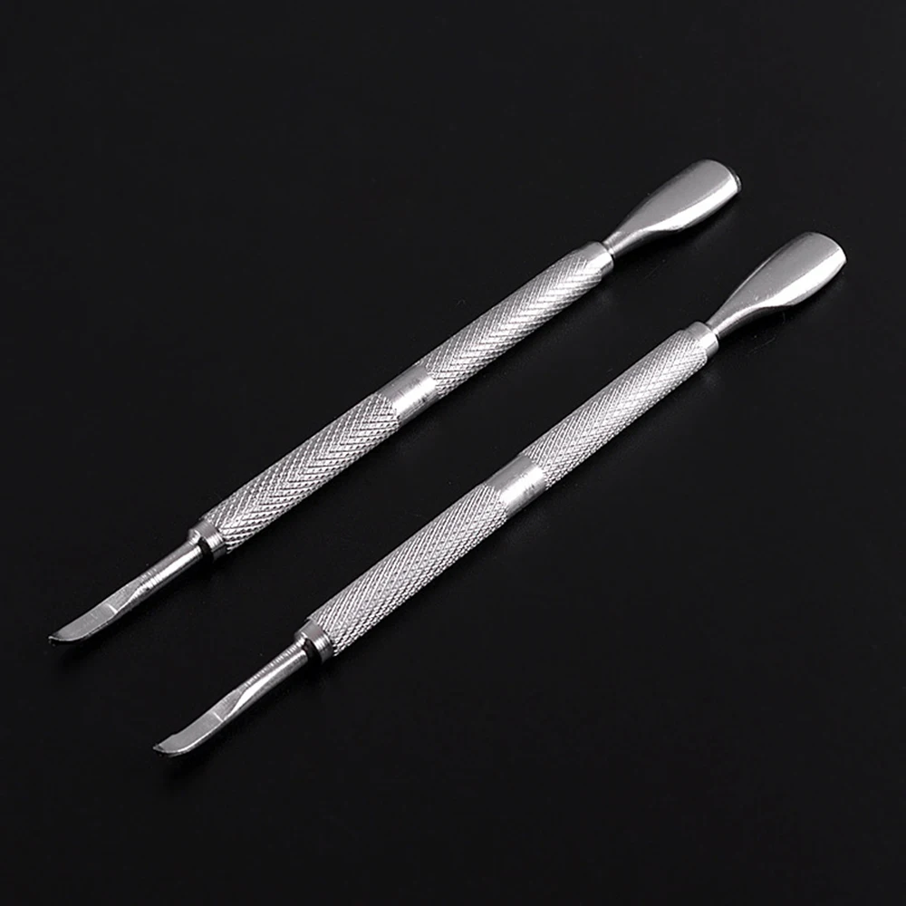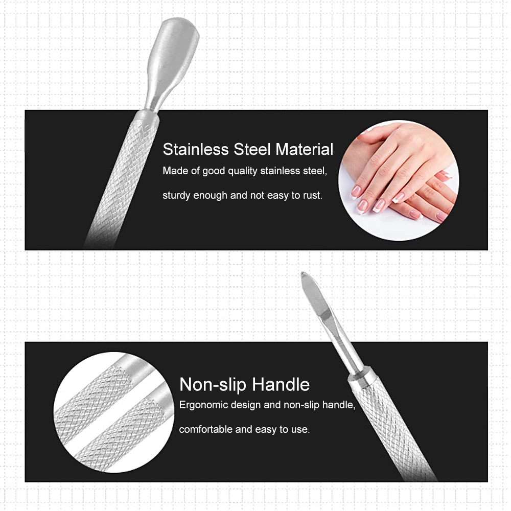 Двойной гвоздь Толкатель для толкания и резки кутикулы ногтей. Эргономичный дизайн и противоскользящая ручка, безопасная в использовании. Это поможет вам оттолкнуть кутикулу назад и обрезать вашу мертвую кожу рядом с ногтями. Это станет полезным инструментом для обрезки ногтей.