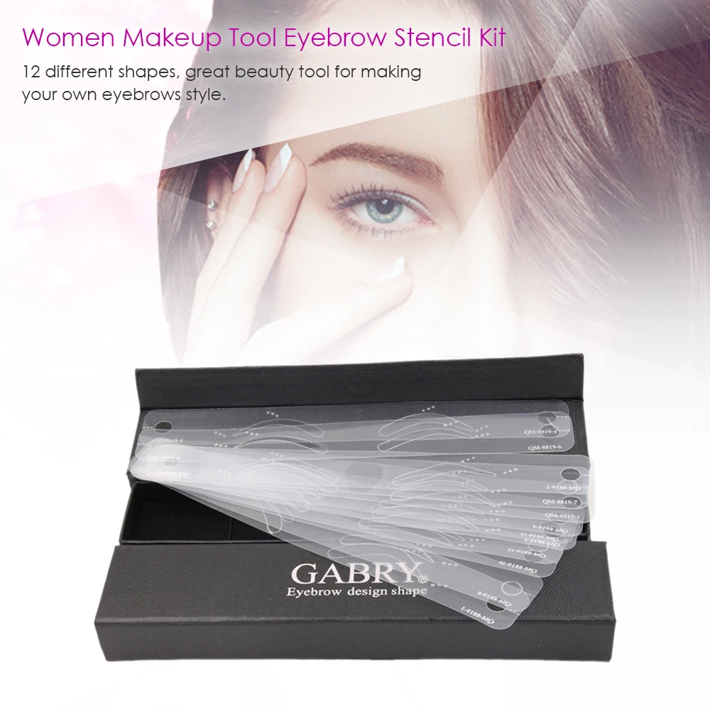 100% абсолютно новые и хорошего качества трафареты для бровей с 12 различных форм. Это может помочь вам нарисовать брови более точно и легко. Очень простой и простой в использовании. Отлично подходит для девочек, чтобы изменить набор для перманентного макияжа бровей и сочетать их различные макияж.