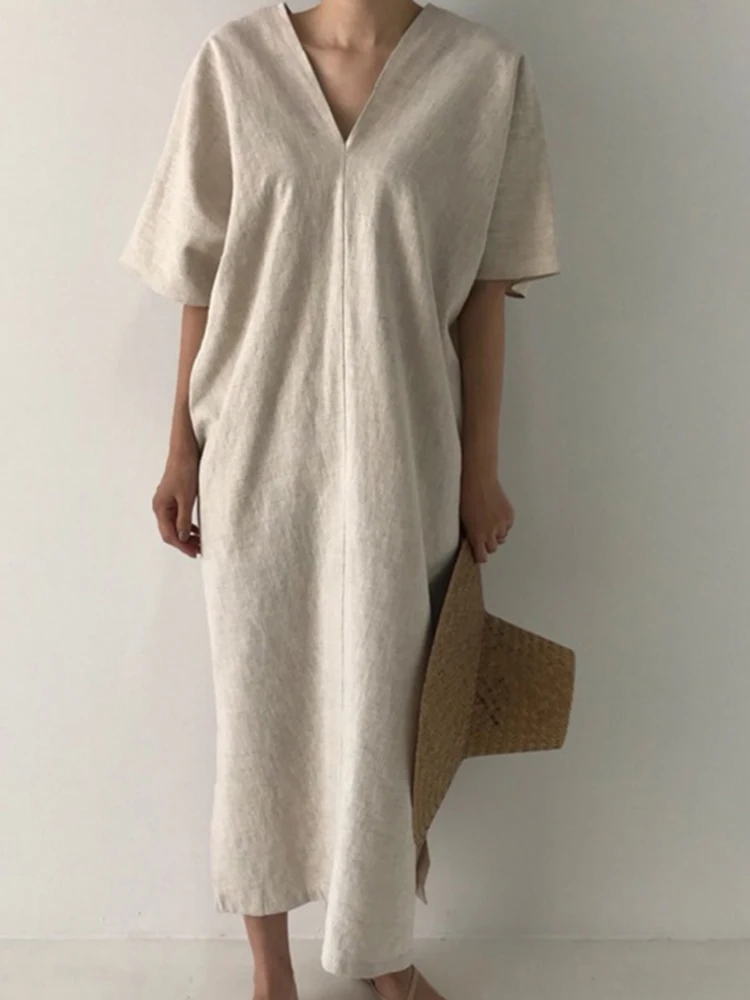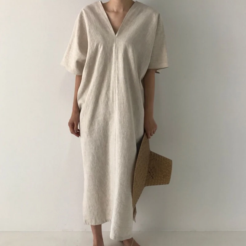 Женское винтажное длинное платье макси, повседневное свободное вечернее платье с коротким рукавом, Платье оверсайз до щиколотки с V-образным вырезом, корейское платье, лето 2019