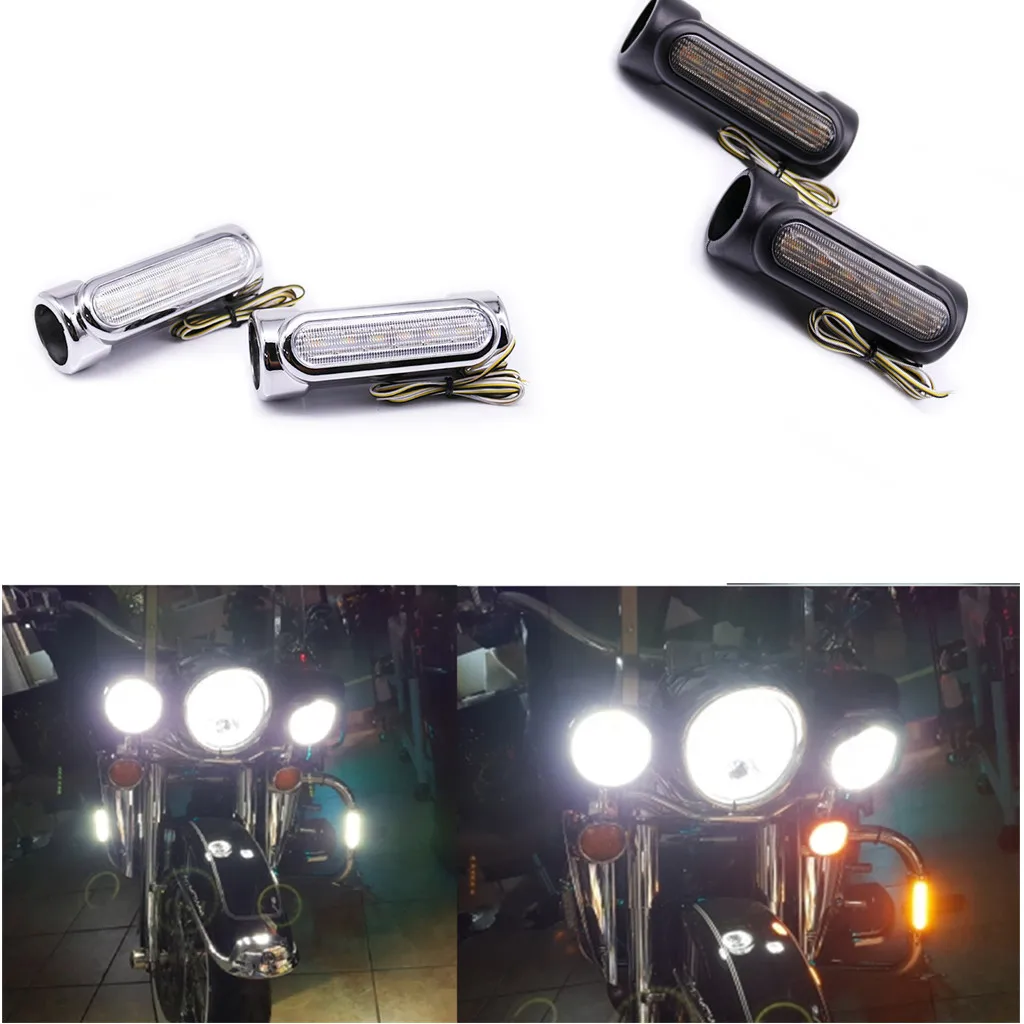 1 пара уличный Glide светодиодный фонарь для защиты двигателя белый янтарный цвет 1,3 дюймов шоссейный бар Swichback Drving огни для Harley 1,25 ''баров