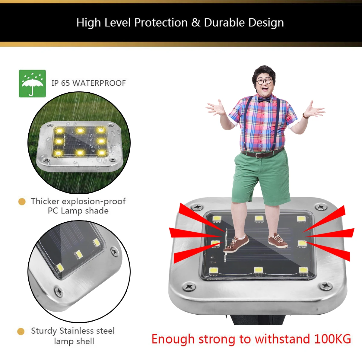 ☀【Солнечная зарядка и энергосбережение и водонепроницаемость светодиодный светильник на солнечной батарее не требует электричества. Когда панель солнечных батарей устанавливается под солнечным светом, включение выключателя, она будет заряжаться солнечным светом в дневное время и автоматически светится в отклике датчика в ночное время. Утвержденный IP65 класс водонепроницаемый дизайн. Не беспокойтесь о сильном дожде, снеге, морозе или сане. ☀【Artistic освещения и долгая Рабочая Time】8 светодиодные лампы для каждого диска светильник с отличной светодиодный мягкий свет делает светодиодный дисковый светильник источник стать площадь источник света, который может устранить блики и улучшает визуальные эффекты. С улучшенной солнечной панелью, вы можете поглощать свет немного больше в то же время. Он может освещаться в течение 8-10 часов с 6-8 часов зарядки. (Время зарядки и работы изменится в зависимости от погоды) ☀【Высокая уровень защиты освещением изменить материал с лампа из нержавеющей стали в виде ракушки, достаточно сильны, чтобы выдерживает из-за плохой погоды и 100 кг постоянный тела; высокое качество поликарбонатовый плафон для светильника с высоким Коэффициент светопропускания, делает выходной эффект диска более текстурированным, цвет света даже мягкий. ☀【Автоматическое включение и включение offсолнечные дисковые огни Интегрированный датчик света, его можно включить автоматически ночью или в темной среде, и он автоматически выключается в дневное время или в ярких местах. Широко используется для использования на открытом воздухе, таких как сад, палуба, вход, дорога, тротуар, бассейн, кемпинг, Морская рыбалка и рафтинг. Это большой успех, как свет, огни безопасности и т. Д.! ☀【Легко установить в заземлении и 】никаких дополнительных кабелей и проводов не требуется. Каждый свет имеет две шипы, вы можете положить его в газон, камень или кирпичи с шипами, вы также можете положить его на палубу или лестницу без шипов.