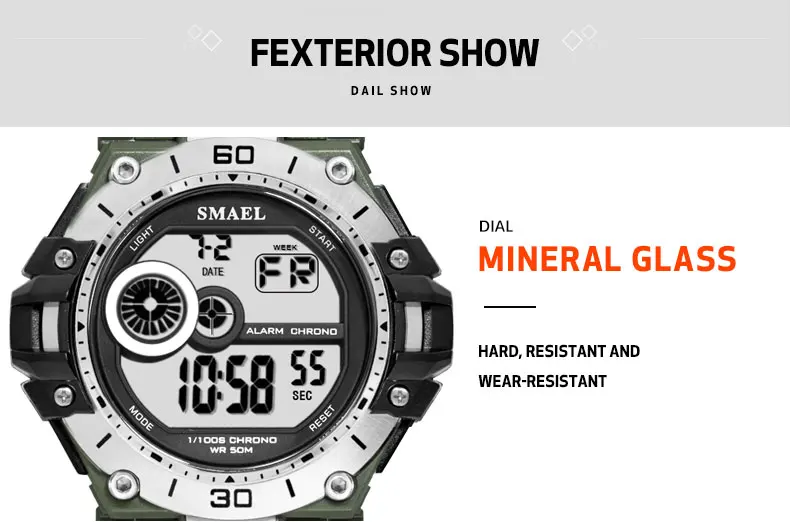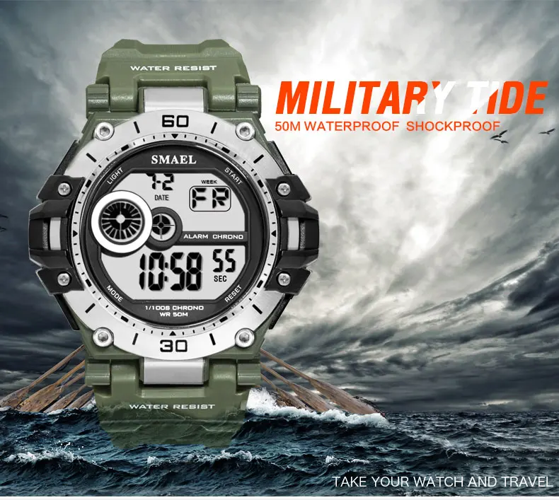 SMAEL спортивные военные часы мужские водонепроницаемые 50 м часы с хронографом и подсветкой секундомер часы Мужские Аналоговые Цифровые часы мужские Relogio