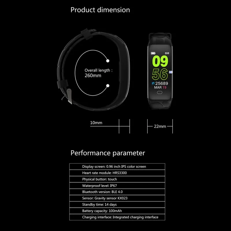 E58 водонепроницаемый IP67 смарт-Браслет фитнес-трек часы спортивный Браслет Смарт-браслет Информация о продукте: цветной браслет (цветной экран 0,96 дюйма IPS), тест на сердечный ритм, тест на кровяное давление, тест на кислород, отображение времени и даты, шаг, калории, дистанционный дисплей, стандартная функция двигателя (шаг, расстояние, калории) мониторинг сна (время сна, качество сна) напоминание о звонке, SMS, QQ, WeChat, Facebook, Skype, Twitter, WhatsApp, Line, KakaoTalk содержимое сообщения push WeChat спортивный доступ поднимите руку, чтобы осветить Сидячий напоминание о тревоге найти телефон несколько спортивных режимов (ходьба, бег, езда на велосипеде, Пешие прогулки, плавание) отказ от вызова, встряхивание одной фотографии, Настройка спортивных целей, Функция обмена информацией о фитнесе, обновление прошивки браслета с помощью APK/APP Автоматическая синхронизация данных с APK/APP напоминание о задаче не беспокоить режим приложения/APK метод загрузки «Синхронизация приложений Android и Apple: напоминание Jyou Pro: (система IOS в Apple store, телефон на Android в приложении Поиск сокровищ Jyou Pro загрузка и установка)" Сканирование qr-кода загрузка и установка спецификации Jyou Pro системные требования Android 4,4 и выше, IOS 8,0 или выше, поддержка Bluetooth 4,0 Bluetooth версии BLE 4.0 экран дисплея 0,96 Дюймовый цветной экран емкость батареи 100 мА · ч Время работы в режиме ожидания 2 недели или около того рабочее время 1 неделя или около того Физическая кнопка сенсорного двигателя встроенный, вибрационное напоминание зарядный интерфейс USB зарядка Водонепроницаемый Рейтинг IP67