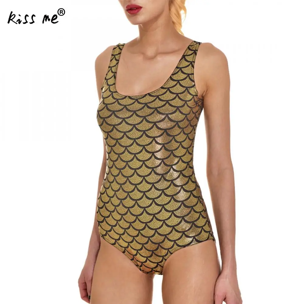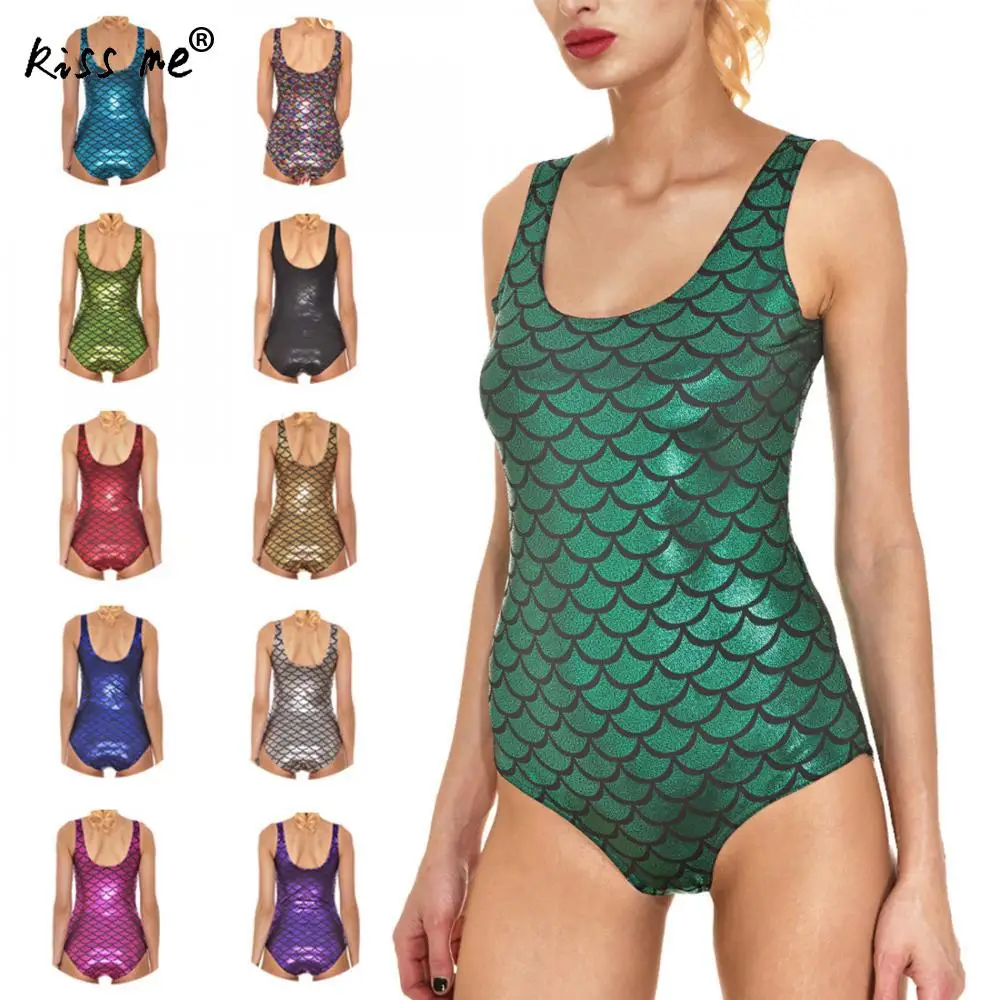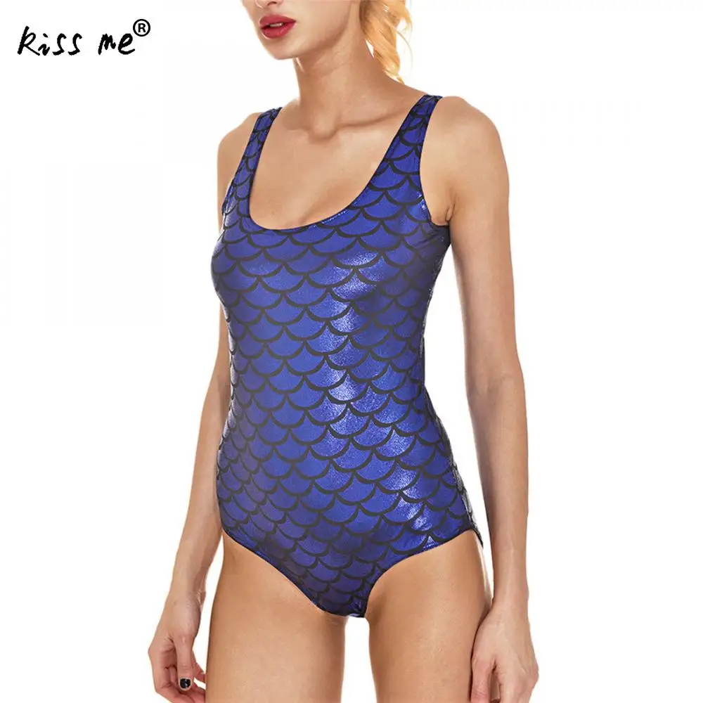Женский цельный купальник размера плюс, сексуальный Монокини с рисунком рыбьей чешуи, пляжный костюм с бретельками и открытой спиной