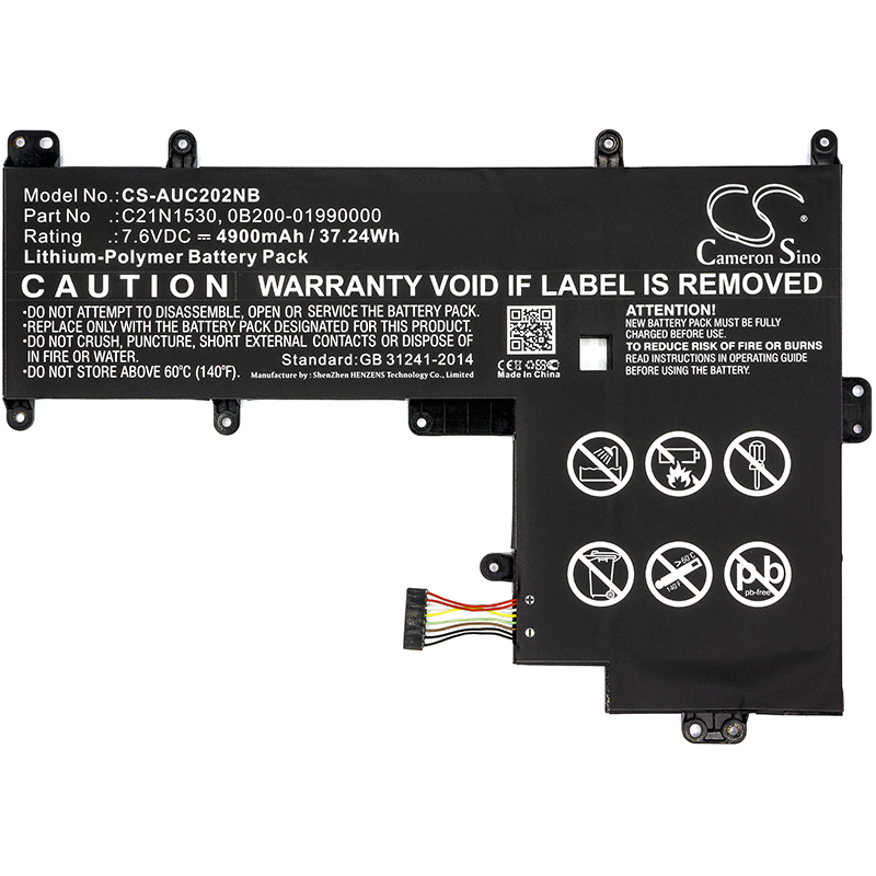 Cameron Sino Model:CS-AUC202NB Part Number : Asus 0B200-01990000 C21N1530 Compatible For: Asus Chromebook C202 Chromebook C202SA Chromebook C202SA-2A Volts: 7.6V Type: Li-Polymer Color: Black Capacity: 4900mAh / 37.24Wh Size: 229.75 x 163.05 x 7.04mm Warranty: 12 Months